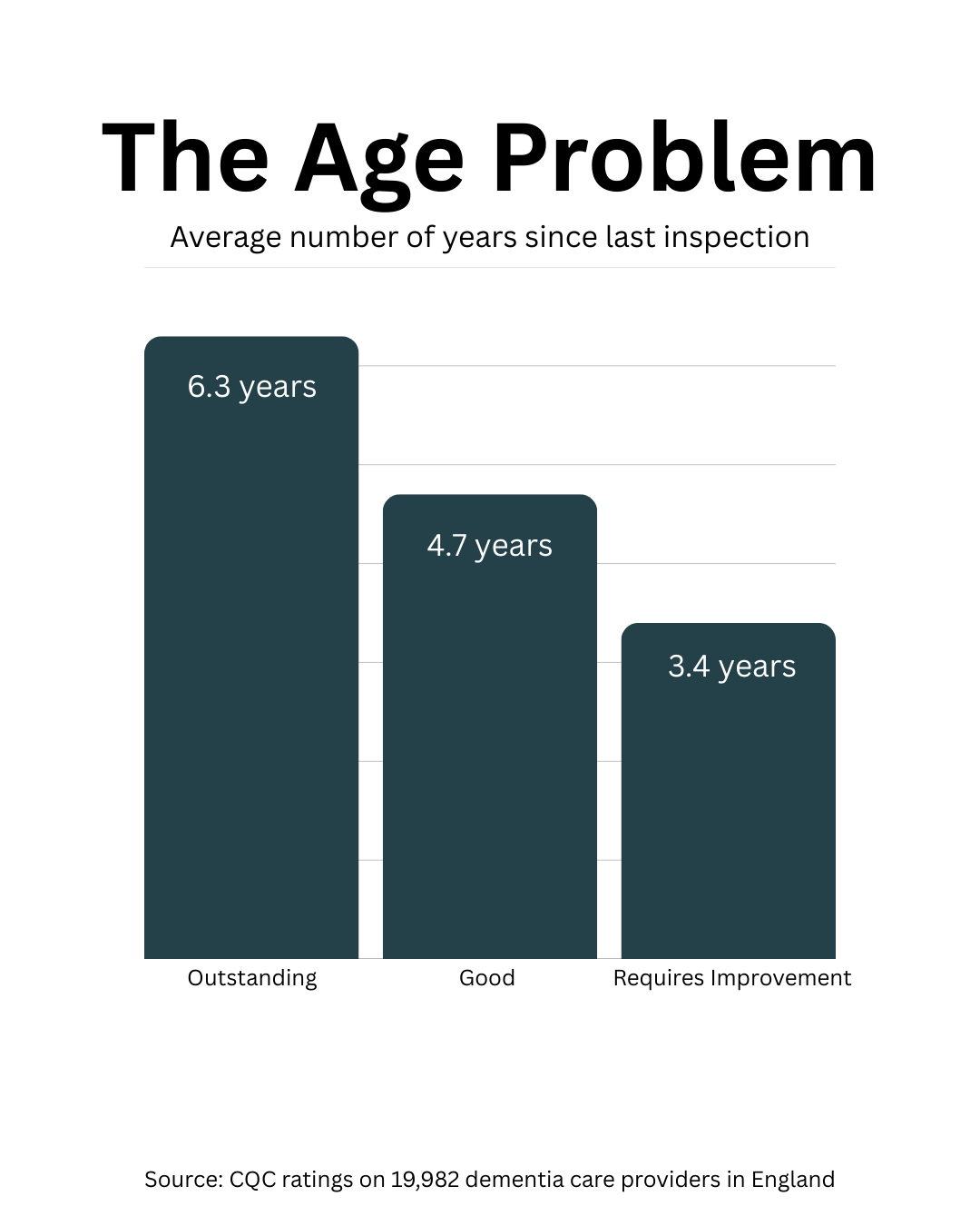 When families search for dementia care, CQC ratings are often the first thing they look at. But how much can you rely on a rating that may be years out of date? We analysed CQC data on nearly 20,000 dementia care providers across England to find out.